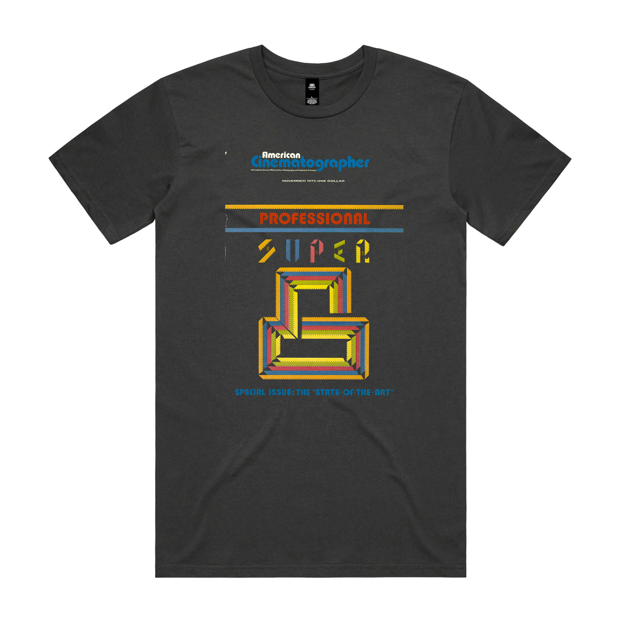 Stay classy with the Historic 1975 American Cinematographer magazine cover. The 1975 AC Cover is prominently featured on the front of the T Shirt.
