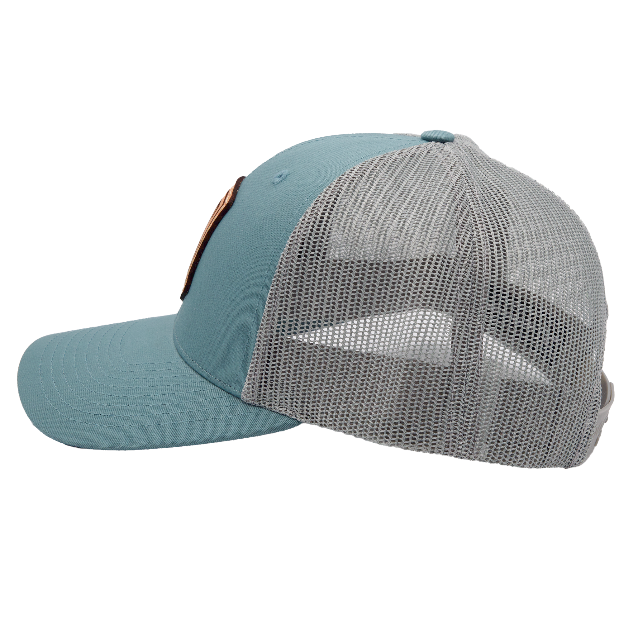 ASC Leather Patch Snapback Low Pro Trucker Smoke Blue/Aluminum