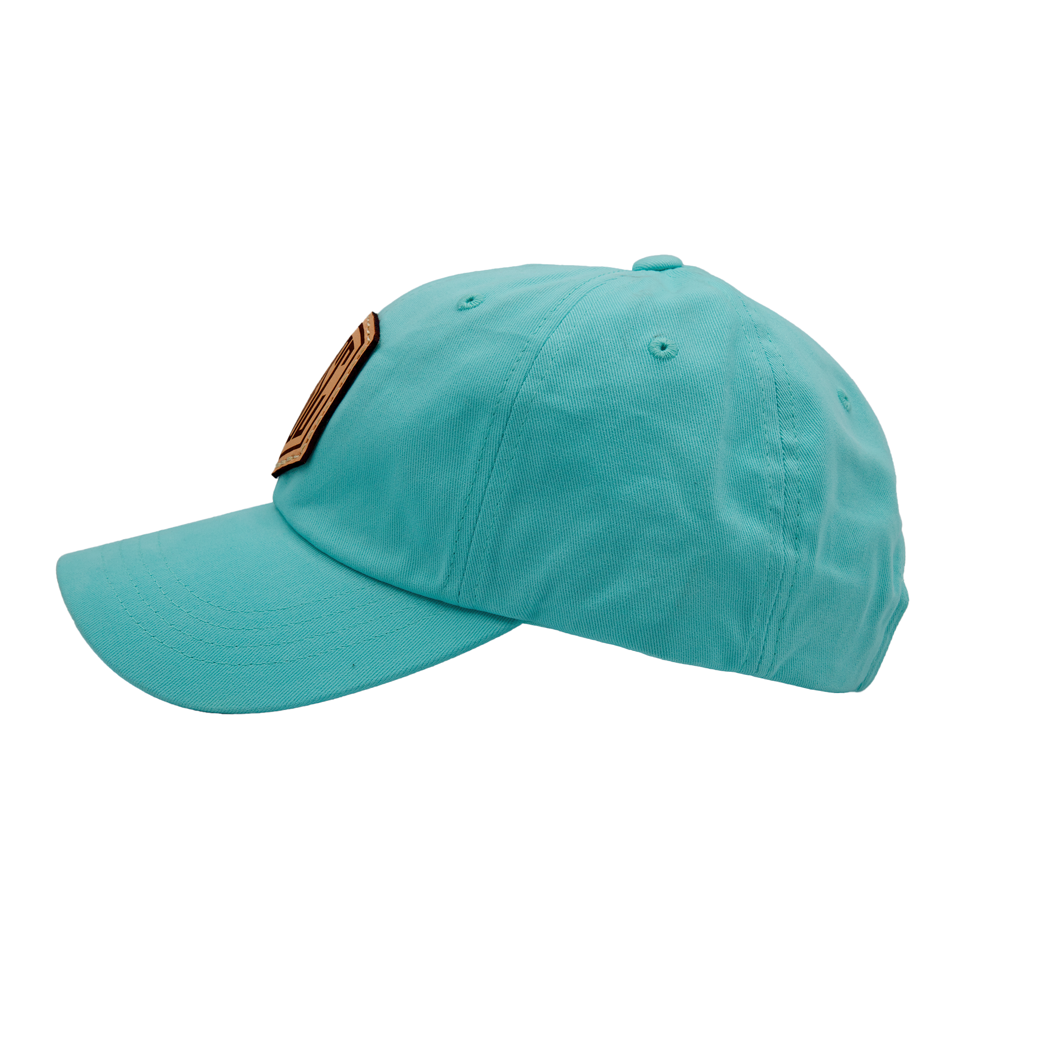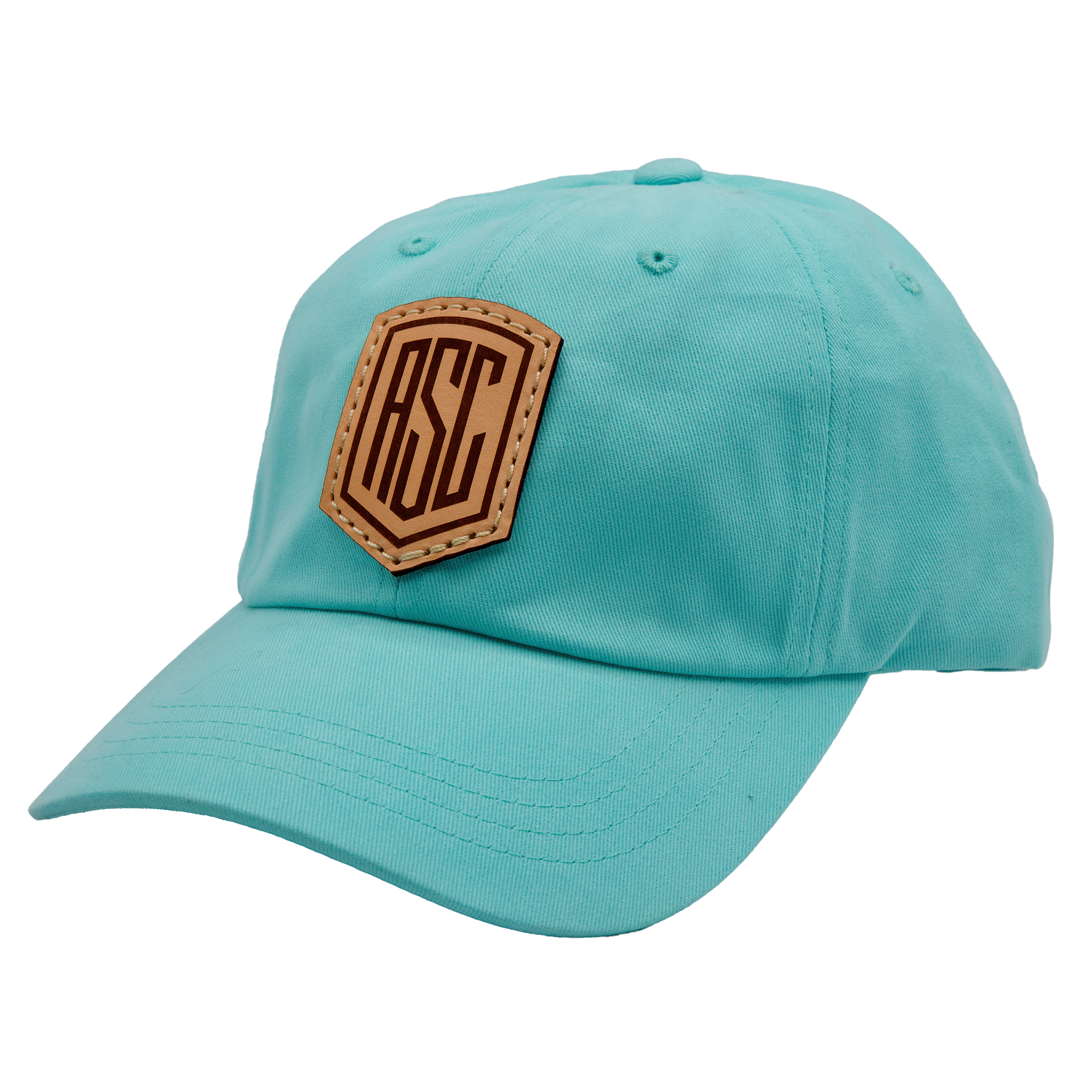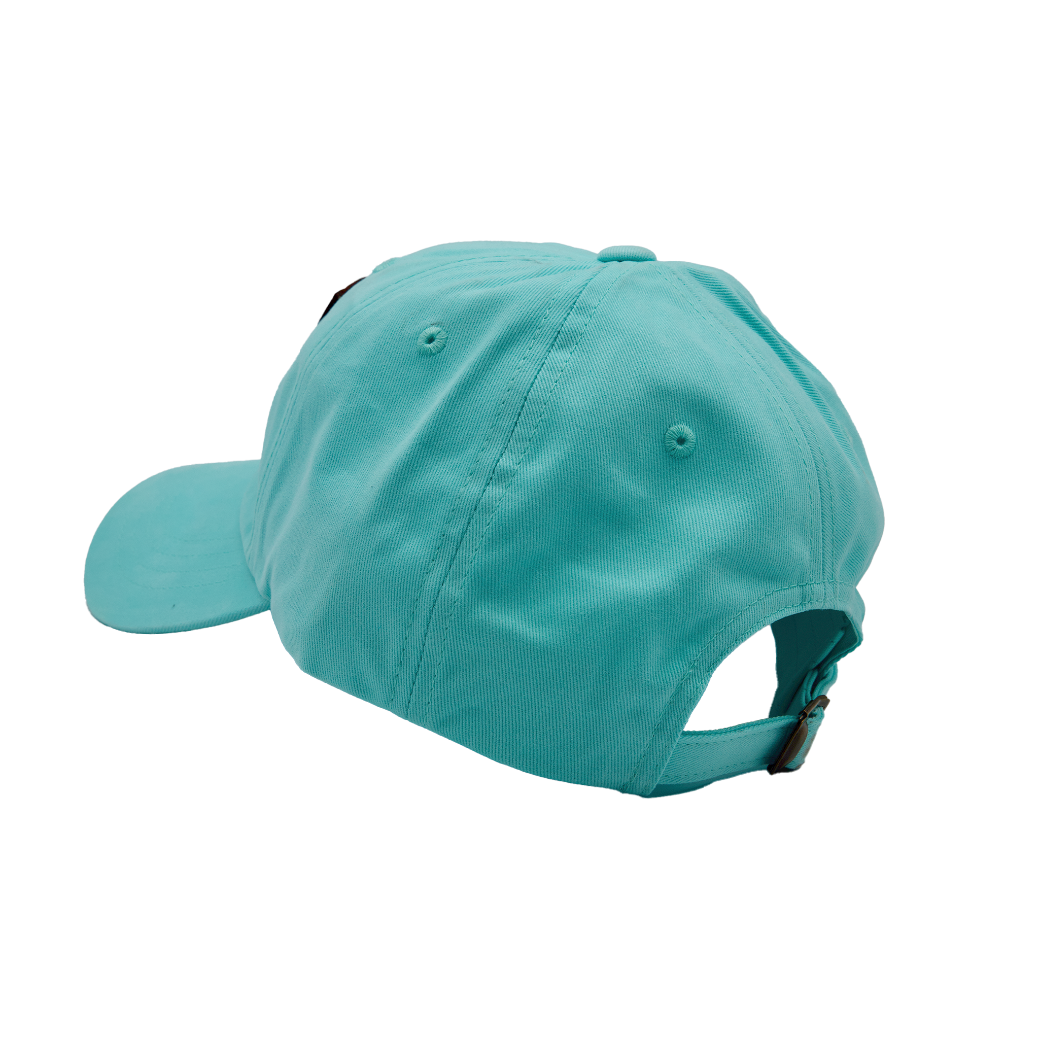 Dad cap with peached twill fabric Unstructured, Antique brass buckle closure Matching undervisor, 4-row stitching on visor
