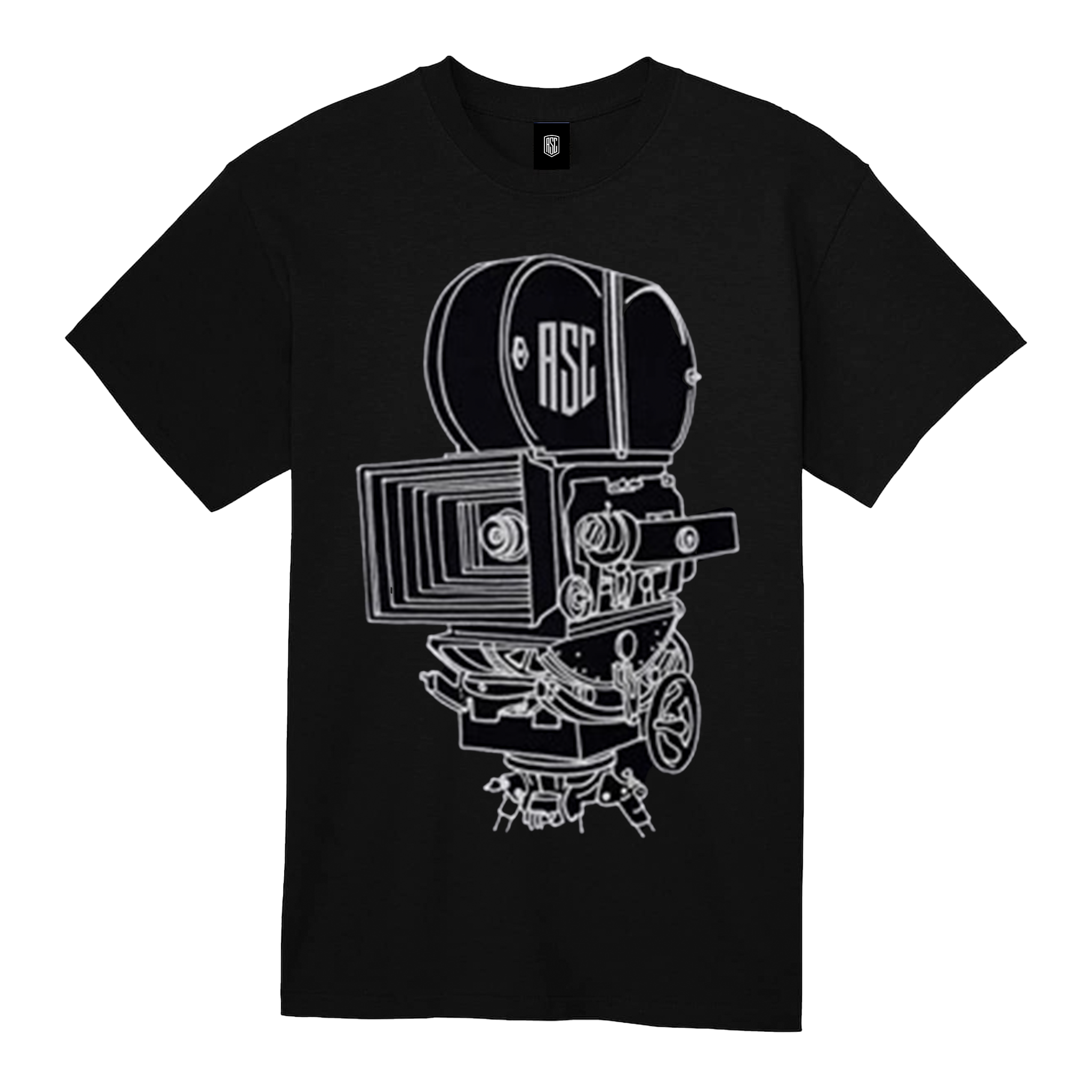 This Black "T" sports ASC member Gregg Toland's Mitchell BNC #2 camera silk-screened in white on the front, with the Mitchell's serial number badge on the back. The Mitchell BNC camera was used by Toland to photograph Citizen Kane (1941) as well as many other exceptional pictures, including Wuthering Heights, The Grapes of Wrath, The Long Voyage Home, Intermezzo, The Little Foxes and The Best Years of Our Lives.